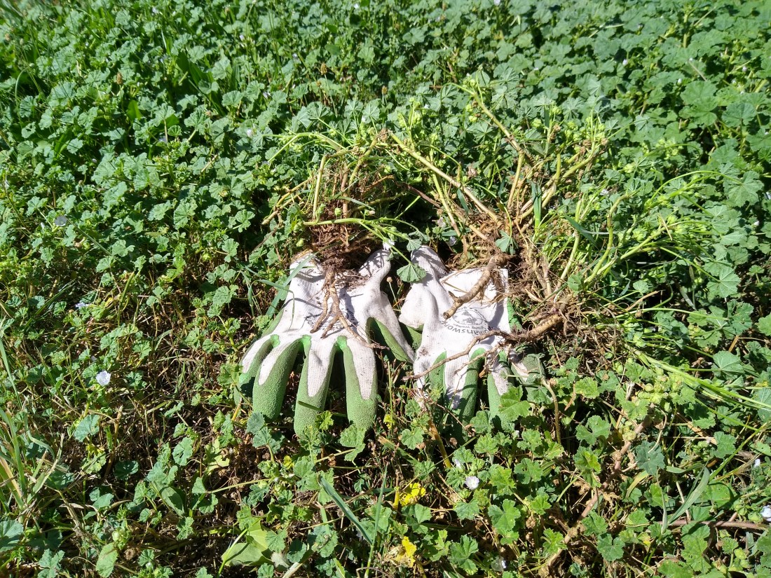 It got away from me this year: buttonweed, also known as common mallow also known as Malva neglecta. I’m pretty sure that Malva neglecta is latin for, if you neglect it, it will take over the world. We have one more phrase for the plant at our house, but it involves swear words. While I don’t mind swear words, I believe that the duty of teaching you or your family members important new swear words and phrases belongs to the parent or individual that is in charge of plumbing repairs in your house. I shall not overstep.