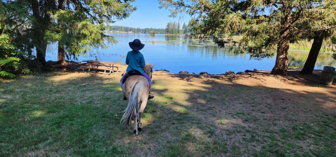 Chaos reigns. I met some old family friends to ride. I thought it would be an easy ride because their horses were old, as were the riders, as am I, and my horse has been a good boy all summer. However, two of the horses were a handful, they were worried and hot from being in a new location. One horse, the Arab, was being ponied (led), from the gray mare. The gray mare was a good soul, but there was a lot going on. The ride was tense, though my horse Vali was good, while the little Haflinger was busy and prancy with her rider. We started at an uphill walk to settle the horses. Betty (not her real name), the rider on the nice gray mare, struggled to lead the Arab gelding who was bucking and rearing and pulling. I watched as her horse reacted to the bucking and rearing horse beside her, as her saddle started to slide sideways. Chaos continued as the Arab acted up; I saw Betty let go of the lead rope, as she slowly fell sideways, slipping down with the saddle landing between two horses. I started to dismount to help and catch the loose horse just as Vali jumped, spooked, reacting to all the chaos and the loose running horse. I was off, hitting the ground hard. Betty was off. The third rider was still mounted on her tense prancing horse.