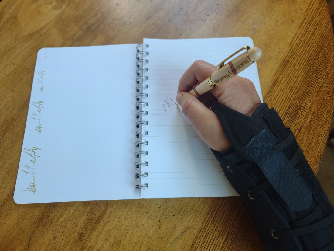 Now with a broken hand I’m noticing the different connections to my brain. The left-hand connection is slow, like a shorted-out wire. I needed to find a way to write my to-do lists or take notes from a phone call. My left-hand penmanship was giant, messy, and nearly indecipherable. We had debates within the family on what my notes meant. I often wasn’t sure myself. Scribbling wasn’t working. Typing was better, with some finger movement allowed on my right hand. I finally started using the task list on my google calendar, instead of my usual long list of hand-written notes in a notebook. I had to keep my to-do list somewhere, or I was lost. The computer version works well, I may continue it after healing.