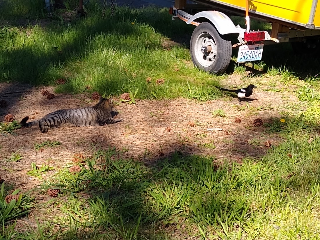 Although they started as barn cats, they both gradually morphed into indoor/outdoor cats and I have long considered making them into indoor-only cats. Indoor cats live longer, and they don’t eat wild birds. In the United States, outdoor cats kill about 2.4 billion birds every year (American Bird Conservancy). I really like birds, and Purrcy, in particular, is a skilled bird hunter. In addition, this year, we have worries of bird flu, carried by, you guessed it, birds. As best as anyone can tell with this new virus, if cats get bird flu, they die. Fast. And I like my kitties!