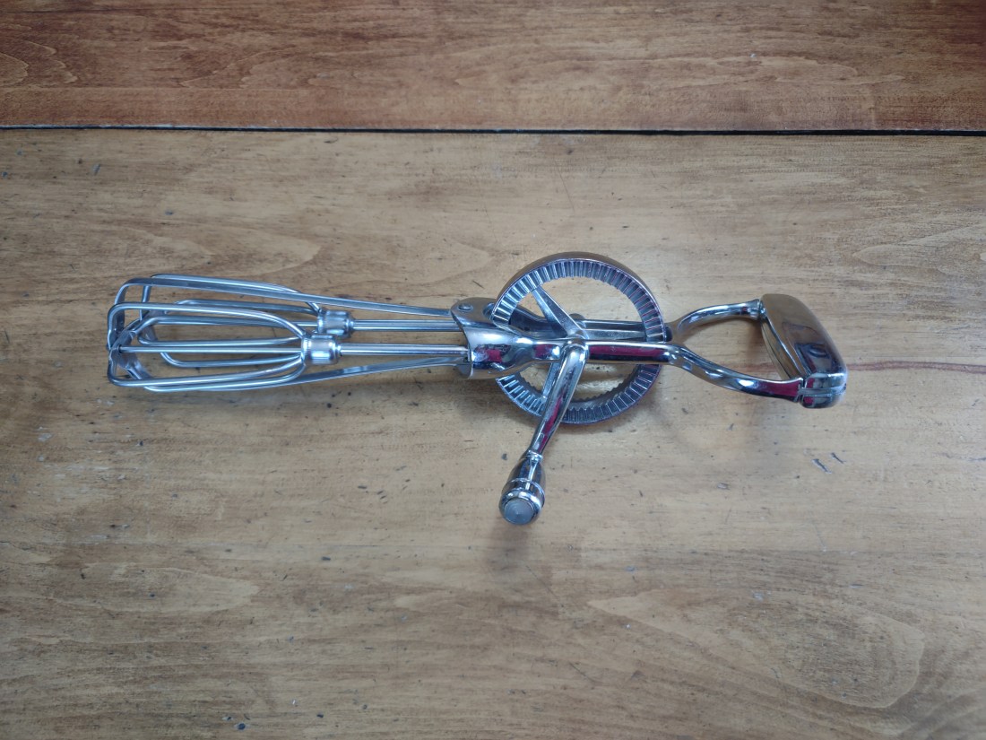 In my craft room, I even have a working treadle sewing machine, and a hand-crank singer. I love the old machines. I know I could use them if the electricity was out, but would I really? Usually if our electricity is off for any length of time it’s because of a big storm, and we are occupied with keeping the house warm, or getting water since the electric well pump doesn’t work without electricity. I’m not usually thinking about crafting. Nonetheless, I really appreciate the machines and tools that don’t require gas or electricity. Like manual eggbeaters.